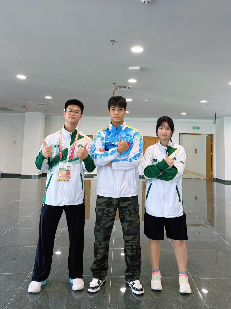 葉文喆自小愛看武俠片,在選修課上接觸民族武術(shù)后就潛心鉆研,經(jīng)常在網(wǎng)上看國內(nèi)大型賽事直播,還是四川隊隊員付楨麗的“迷弟”。一場比賽后,他向付楨麗要簽名,并贈送了對方澳門特色徽章。