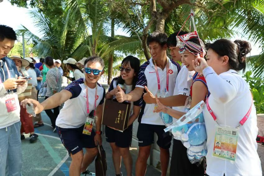 在運動會毽球場館,每支參賽隊伍都收到了香港代表團贈送的毽球掛飾或龍形胸針。西藏代表團的壯族小伙韋盛森計劃回贈具有壯族特色的“繡球”;而早就與香港運動員因毽球結(jié)緣的廣東隊老將孫麗艷則決定——等香港隊在圣誕節(jié)到廣東集訓時,她要給老朋友回贈實用的禮物。