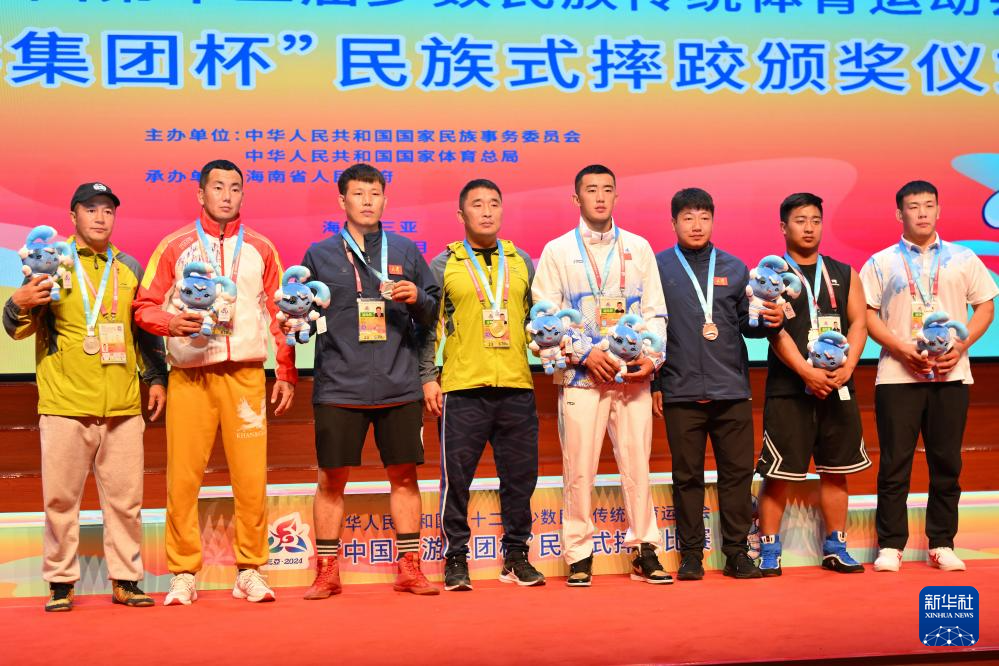 當(dāng)日,第十二屆全國(guó)少數(shù)民族傳統(tǒng)體育運(yùn)動(dòng)會(huì)民族式摔跤項(xiàng)目頒獎(jiǎng)儀式在海南省三亞市舉行。