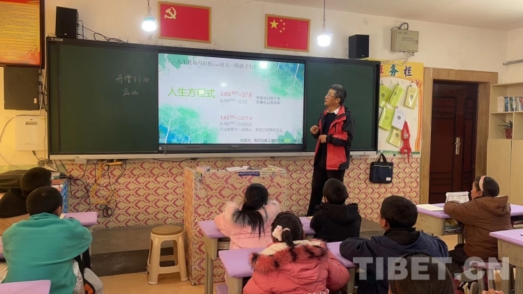 圖為2022年4月10日,韓軍峰為革吉縣完全小學畢業(yè)班的同學們上主題班會