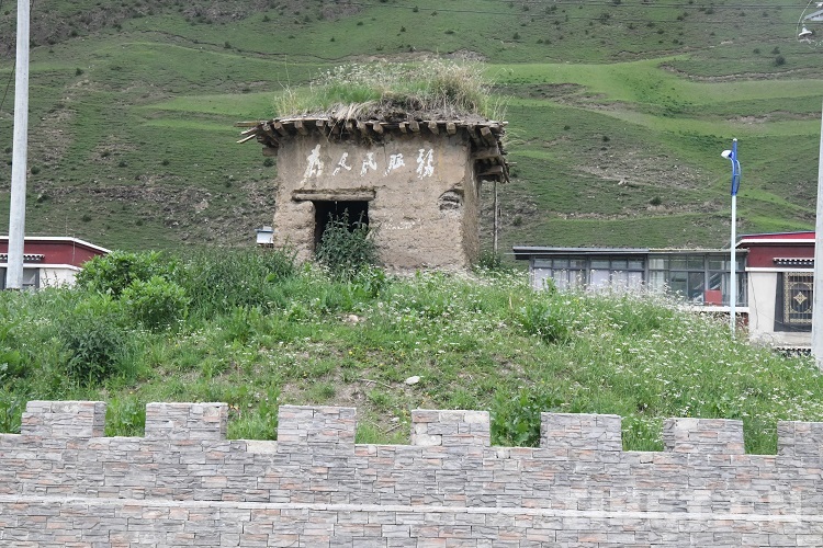 瞭望臺建在吉若塘中心的一座土丘上,是一座夯土圍墻和細木屋頂建造的簡易小屋,高約2.5米,長寬各約3米,外墻上方醒目地方寫著“為人民服務(wù)”五個白色大字,現(xiàn)在依然很清晰。據(jù)當?shù)乩习傩战榻B,此前瞭望臺與營地之間還有一條高1.5米、寬約2米的地道,供駐守人員安全通行。