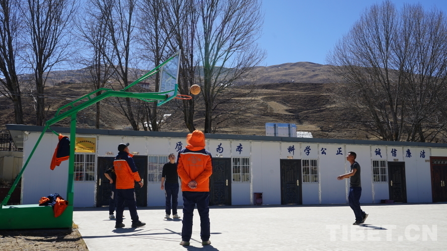 圖為養(yǎng)護職工在午休時間打籃球 攝影:張宇