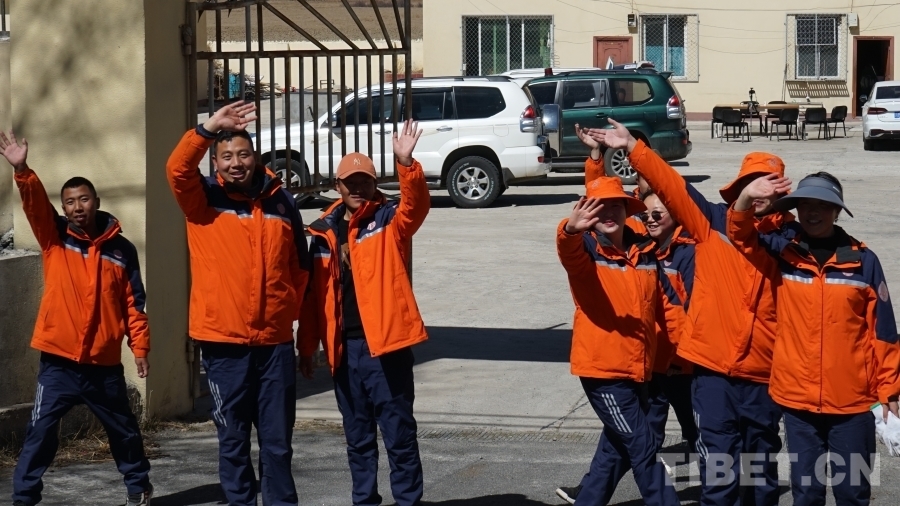 圖為臨行前,養(yǎng)護職工們向川藏線采訪組揮手致意 攝影:張宇