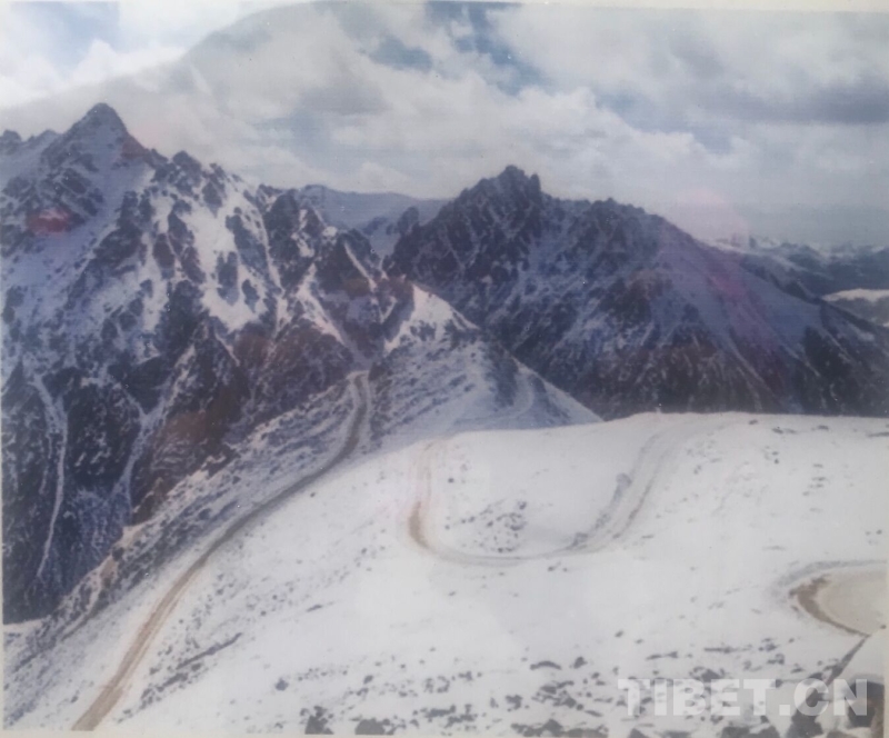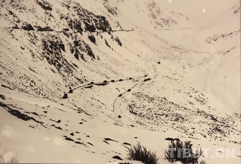 圖為車隊(duì)翻越雀兒山,當(dāng)年至少需要一個(gè)多小時(shí)才能翻越雀兒山。 翻拍:龍真多吉