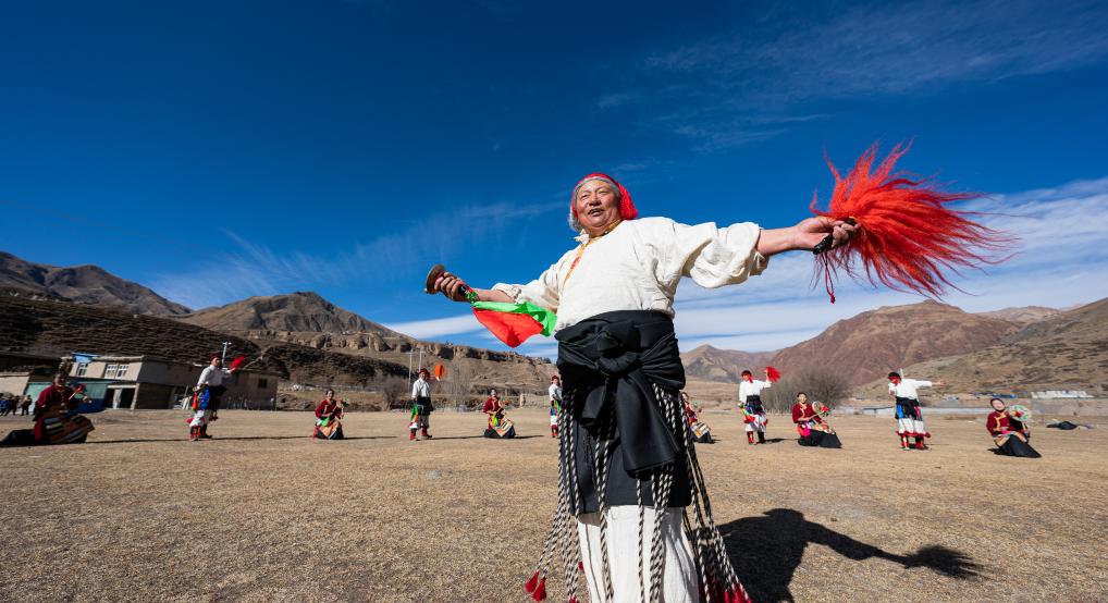 新年伊始,在西藏昌都市丁青縣尺犢鎮(zhèn)的草壩上,烏巴村文藝演出隊正在熱火朝天地排練。盡管寒風(fēng)凜冽,但激昂的鼓點和熱烈的音樂,讓這片土地充滿了生機(jī)與活力。