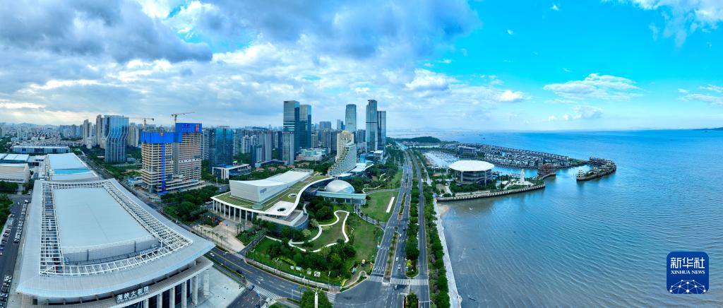這是9月4日拍攝的廈門國際會議中心、環(huán)島路一帶濱海景觀(無人機全景照片)。