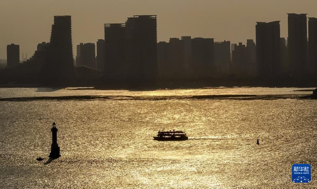 一艘游輪在廈門海灣公園附近的海面上穿行(9月3日攝 無人機照片)。