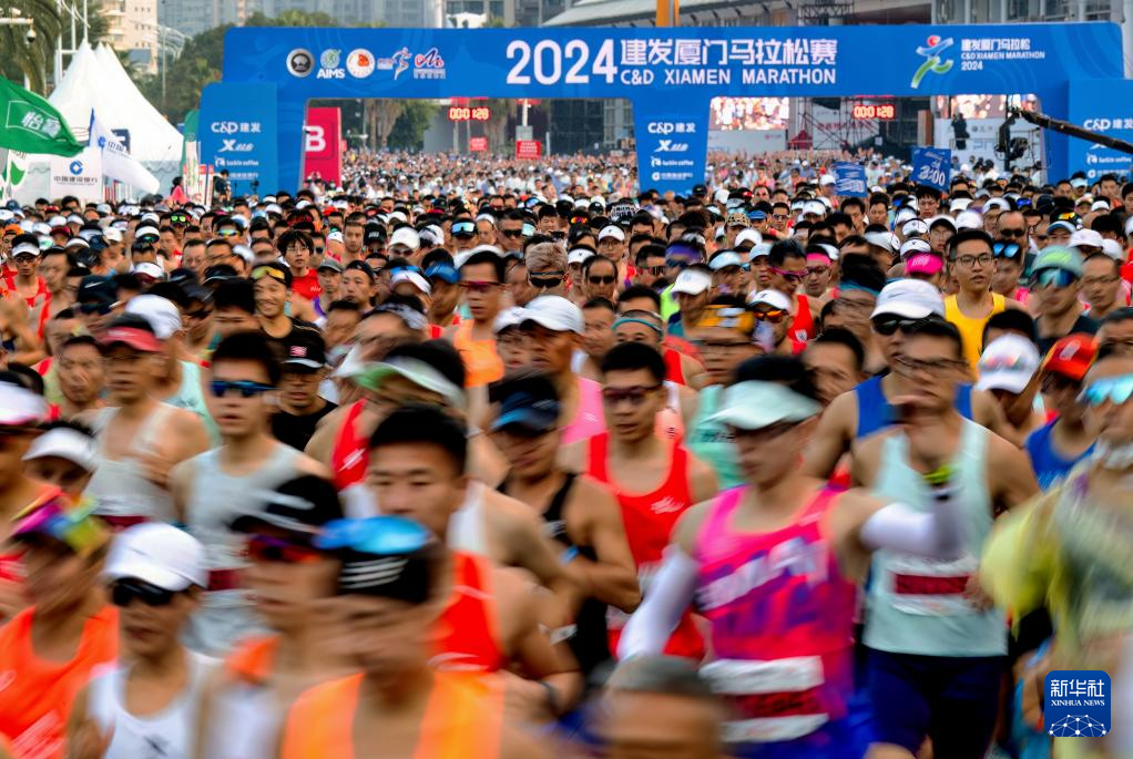 這是選手從2024廈門馬拉松賽起點出發(fā)(1月7日攝)。