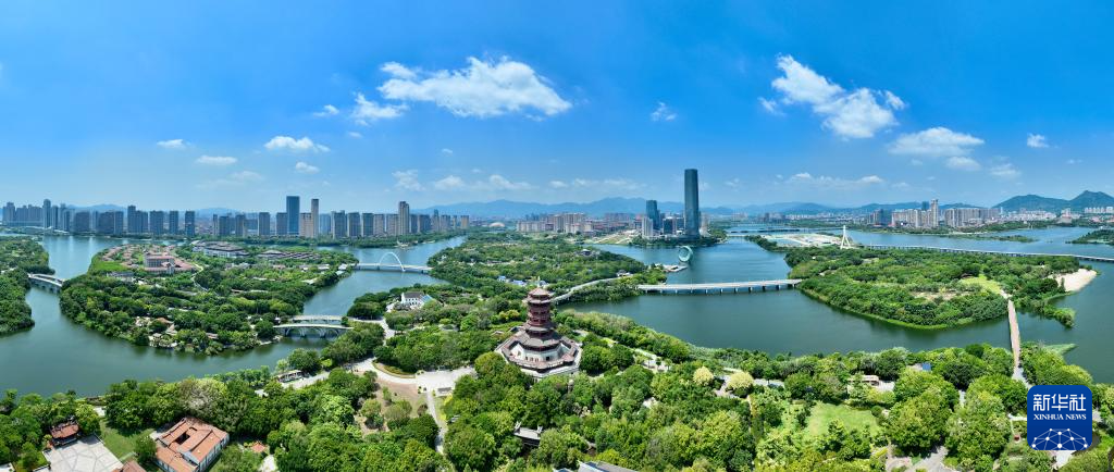這是位于廈門市集美區(qū)杏林灣的國家重點公園和國家城市濕地公園“廈門園林博覽苑”(無人機照片,9月3日攝)。