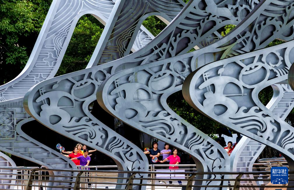 晨練者在廈門市演武大橋觀景平臺附近鍛煉健身(9月4日攝)。