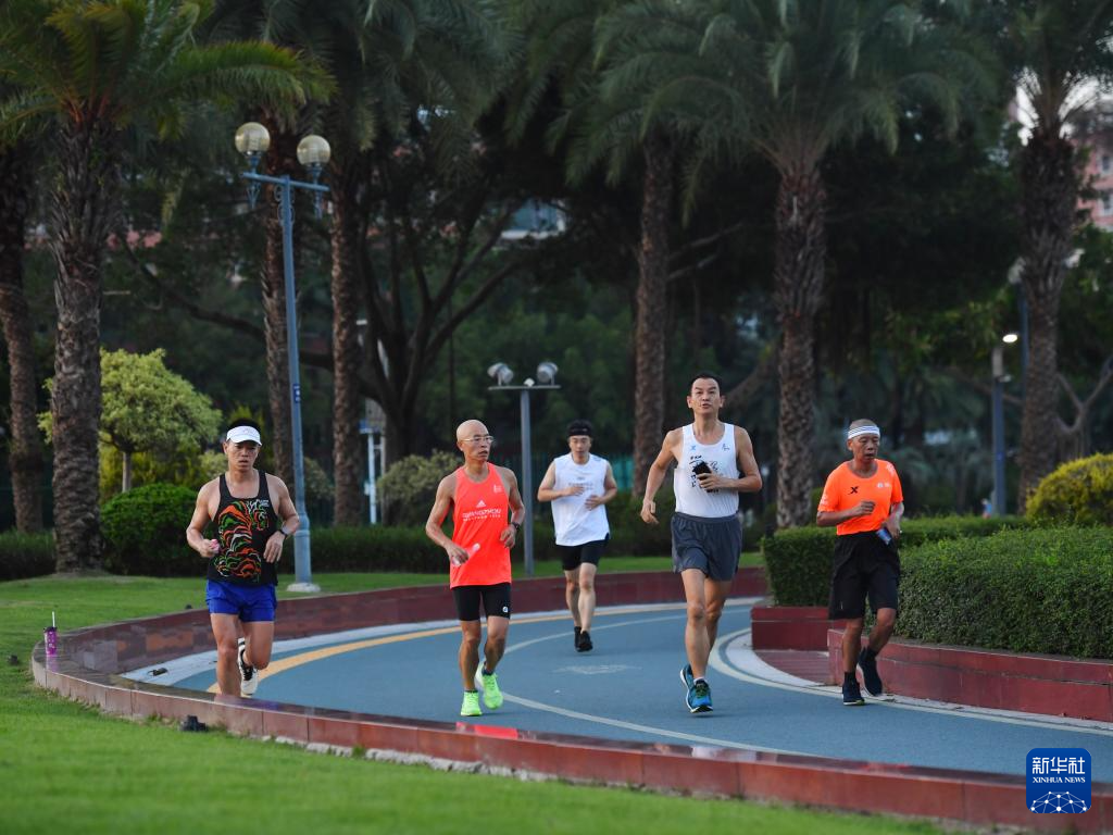 9月3日,廈門市民在白鷺洲公園跑步健身。