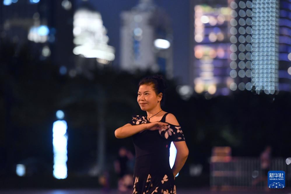 9月3日,廈門市民在白鷺洲公園跳舞休閑。