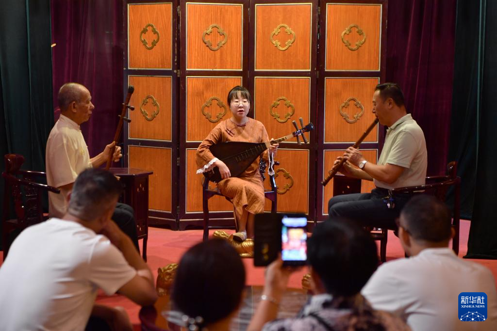 9月4日,游客在廈門鼓浪嶼海天堂構(gòu)景點欣賞南音表演。