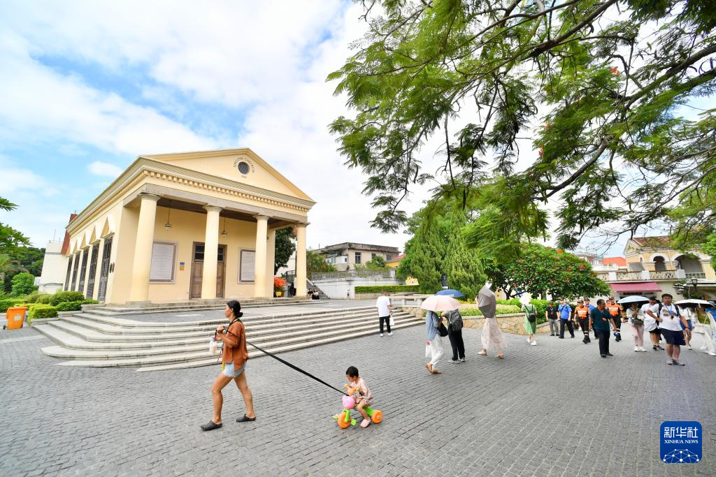 9月4日,游客在廈門鼓浪嶼協(xié)和禮拜堂一帶游覽。