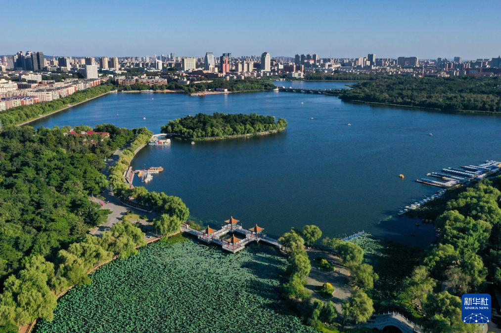 9月3日拍攝的長(zhǎng)春市南湖公園(無人機(jī)照片)。