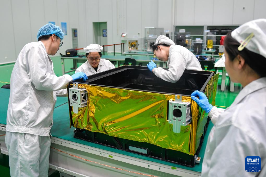 在吉林省長(zhǎng)春市,長(zhǎng)光衛(wèi)星技術(shù)股份有限公司科研人員將制作完成的多層隔熱組件包覆在衛(wèi)星外殼部件上(4月2日攝)。