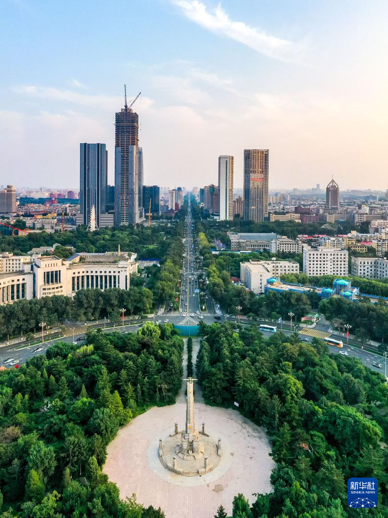 8月24日拍攝的長(zhǎng)春市中軸線上的人民廣場(chǎng)及人民大街(無人機(jī)照片)。