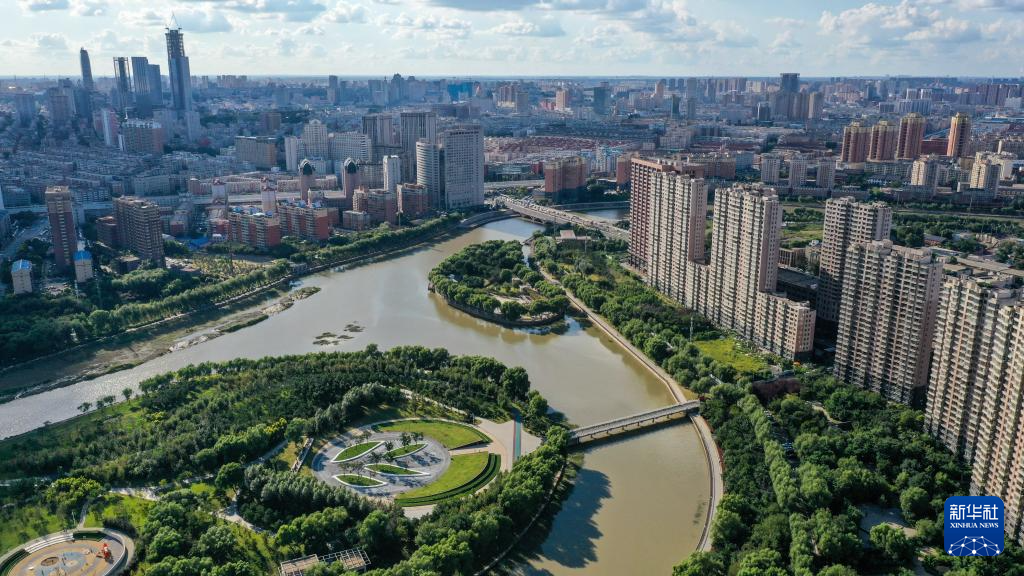 8月27日拍攝的長(zhǎng)春市伊通河景色(無人機(jī)照片)。