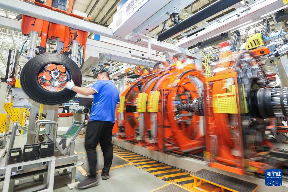 9月3日,在位于長(zhǎng)春汽車經(jīng)濟(jì)技術(shù)開發(fā)區(qū)的吉林玲瓏輪胎有限公司生產(chǎn)車間內(nèi),工人使用成型機(jī)加工輪胎產(chǎn)品。