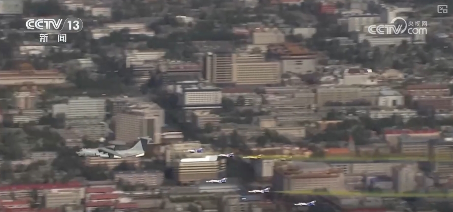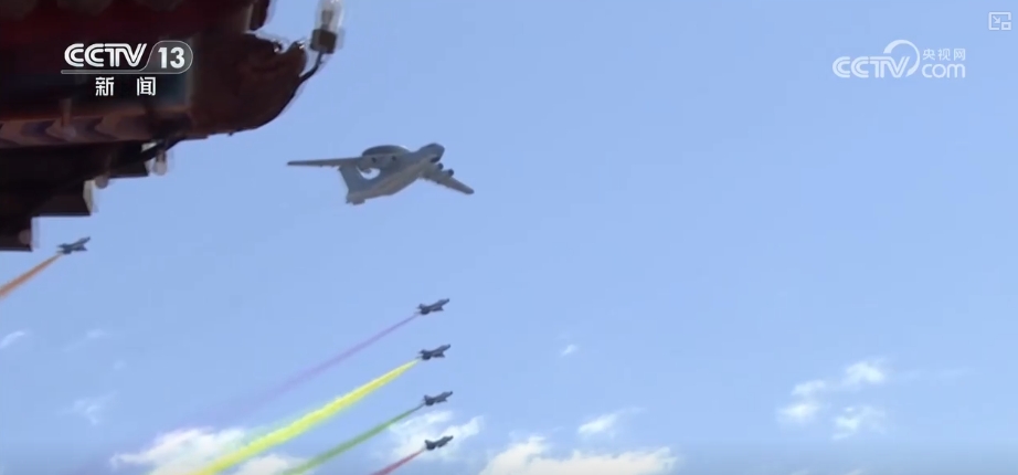 率先飛過天安門上空的是多機(jī)編隊(duì)的領(lǐng)隊(duì)梯隊(duì),帶隊(duì)長(zhǎng)機(jī)是空警2000預(yù)警機(jī),“藍(lán)天嬌子”攜雷霆之勢(shì)展空中雄姿。