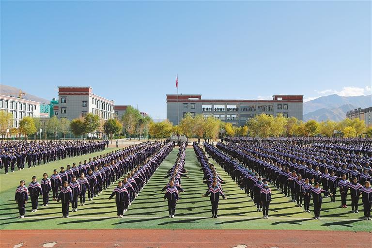 圖為拉薩實(shí)驗(yàn)中學(xué)的學(xué)生在做課間操。 (圖片由江蘇援藏指揮部提供)