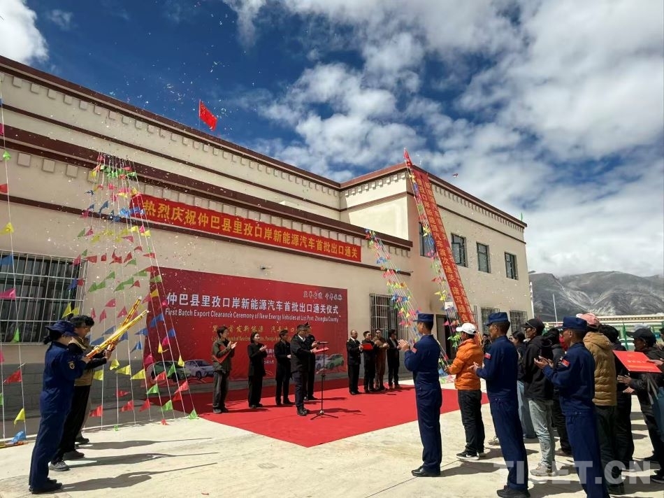 圖為里孜口岸首批新能源汽車出口通關(guān)儀式現(xiàn)場(chǎng) 攝影:白瑪曲珍