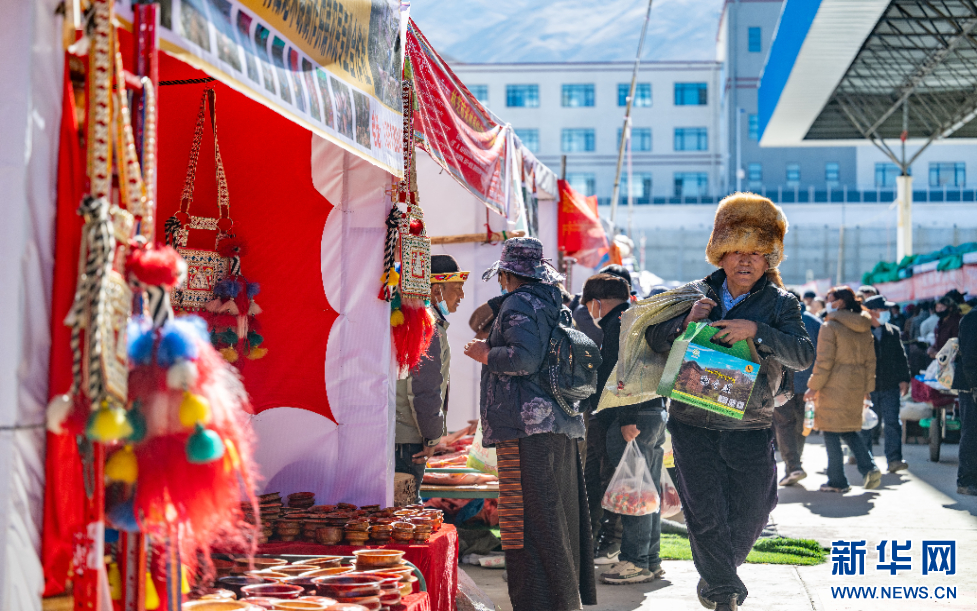 12月1日,市民在西藏自治區(qū)山南市第45屆雅礱物資交流會(huì)現(xiàn)場(chǎng)挑選商品。新華網(wǎng) 旦增努布 攝