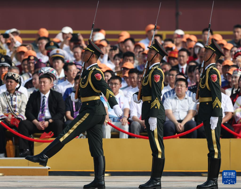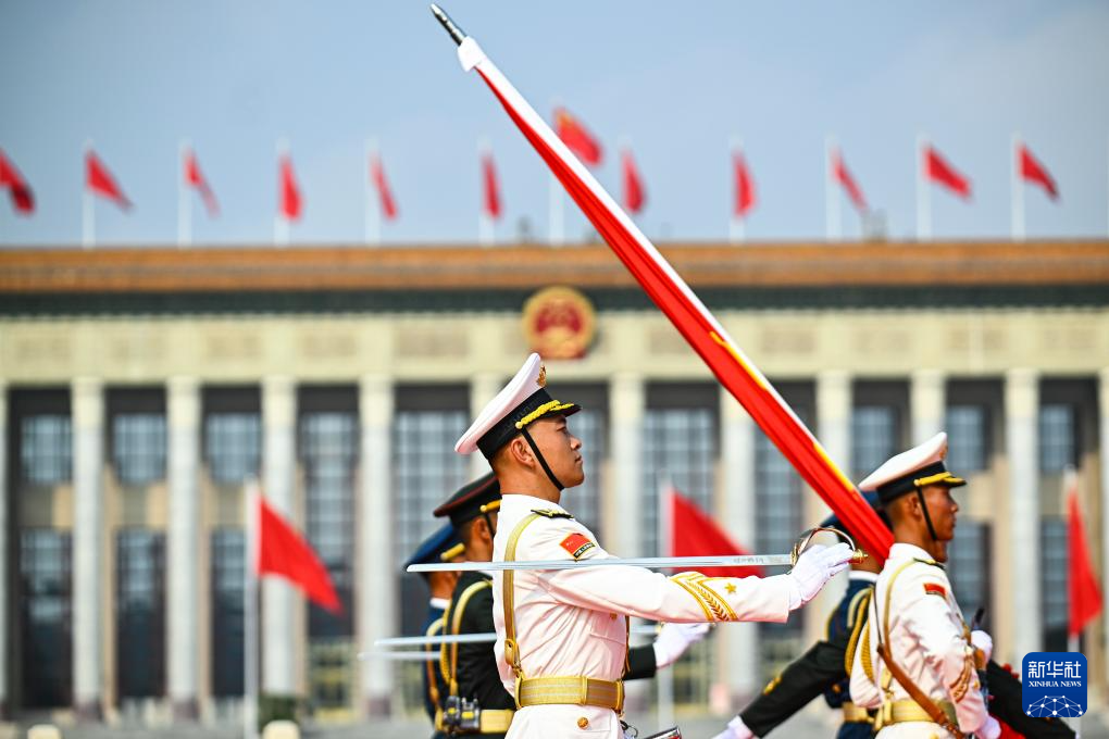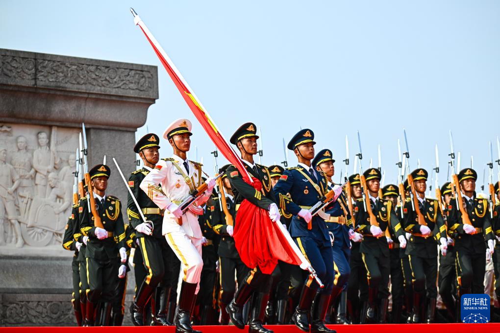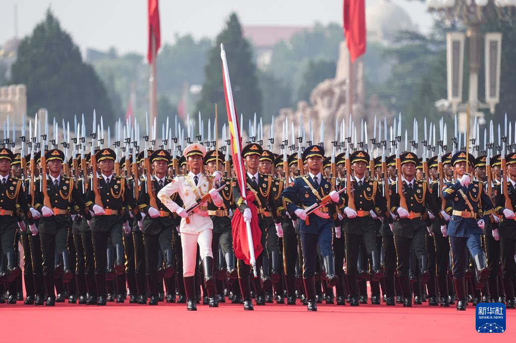 9月3日,紀(jì)念中國人民抗日戰(zhàn)爭暨世界反法西斯戰(zhàn)爭勝利80周年大會(huì)在北京隆重舉行。這是國旗護(hù)衛(wèi)隊(duì)在天安門廣場上列隊(duì)。