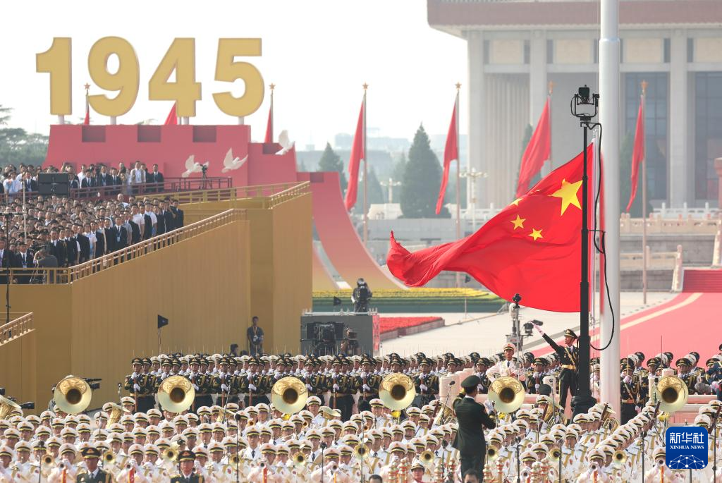 9月3日,紀(jì)念中國人民抗日戰(zhàn)爭暨世界反法西斯戰(zhàn)爭勝利80周年大會(huì)在北京隆重舉行。這是天安門廣場舉行隆重的升國旗儀式。