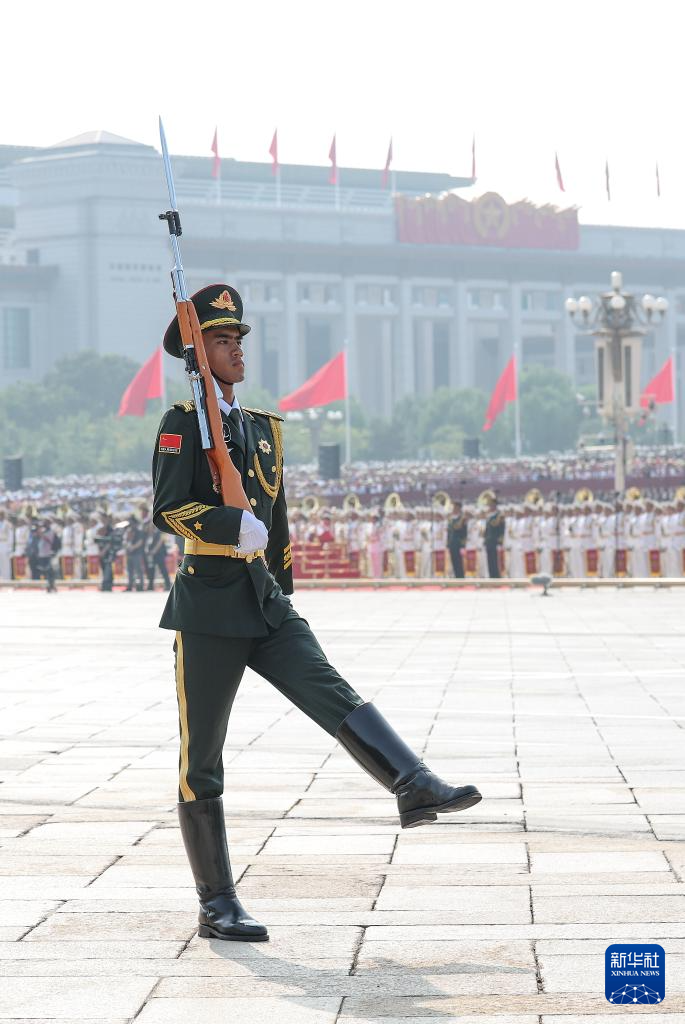 9月3日,紀(jì)念中國人民抗日戰(zhàn)爭暨世界反法西斯戰(zhàn)爭勝利80周年大會(huì)在北京隆重舉行。這是標(biāo)兵就位。
