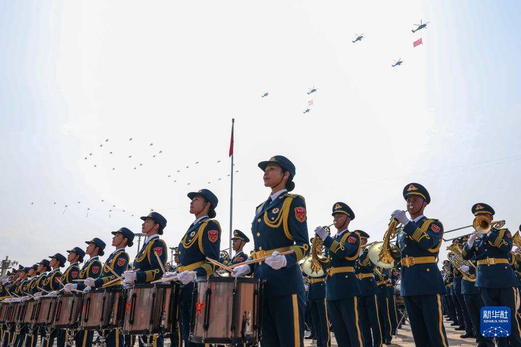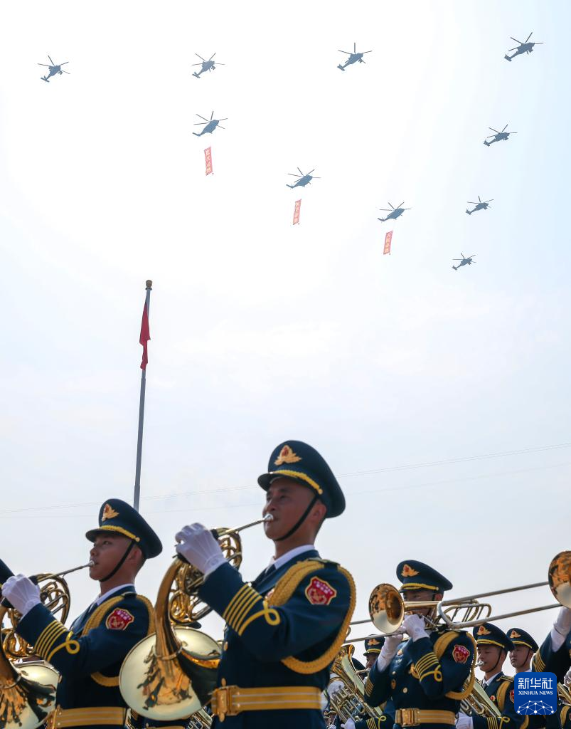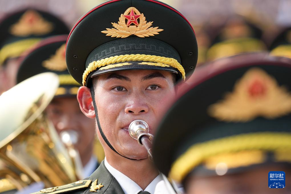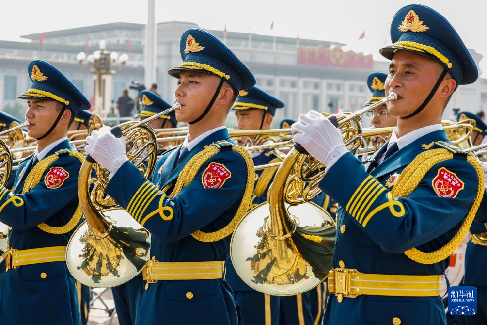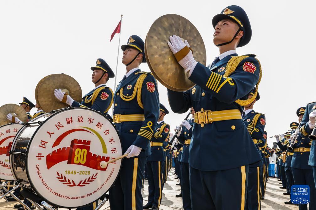 9月3日,紀(jì)念中國人民抗日戰(zhàn)爭暨世界反法西斯戰(zhàn)爭勝利80周年大會(huì)在北京天安門廣場隆重舉行。這是中國人民解放軍聯(lián)合軍樂團(tuán)在演奏。