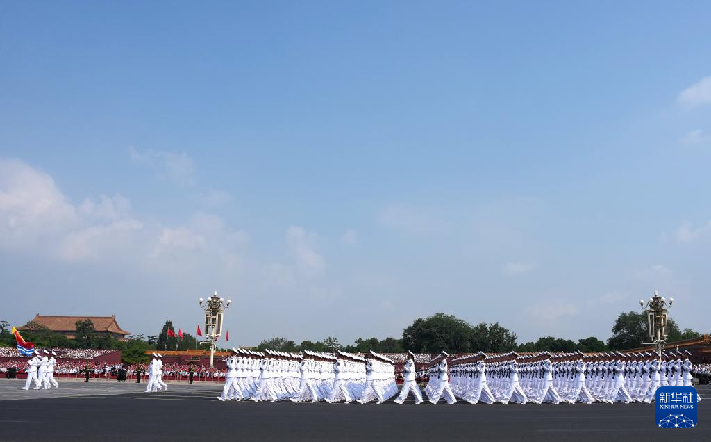 9月3日,紀(jì)念中國人民抗日戰(zhàn)爭暨世界反法西斯戰(zhàn)爭勝利80周年大會(huì)在北京隆重舉行。這是徒步方隊(duì)接受檢閱。