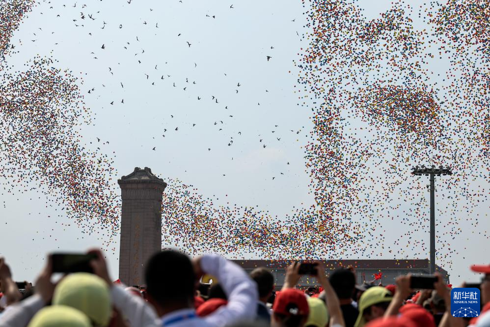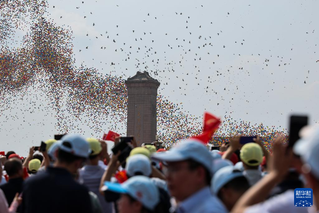 9月3日,紀念中國人民抗日戰(zhàn)爭暨世界反法西斯戰(zhàn)爭勝利80周年大會在北京隆重舉行。這是紀念大會現(xiàn)場放飛氣球和鴿子。
