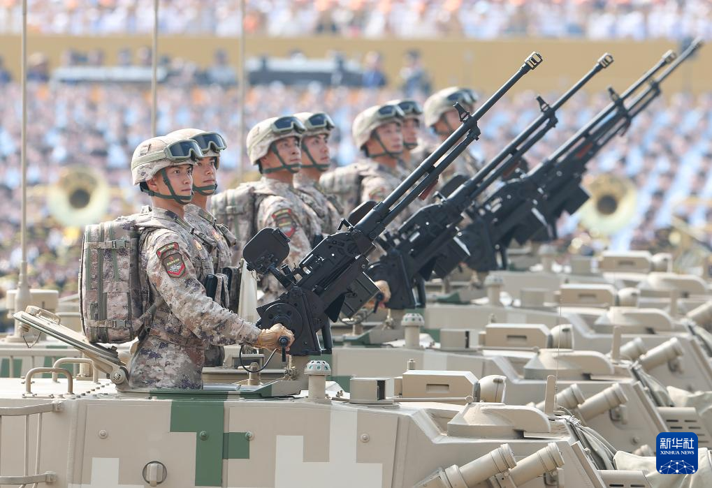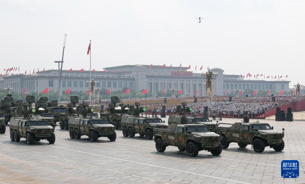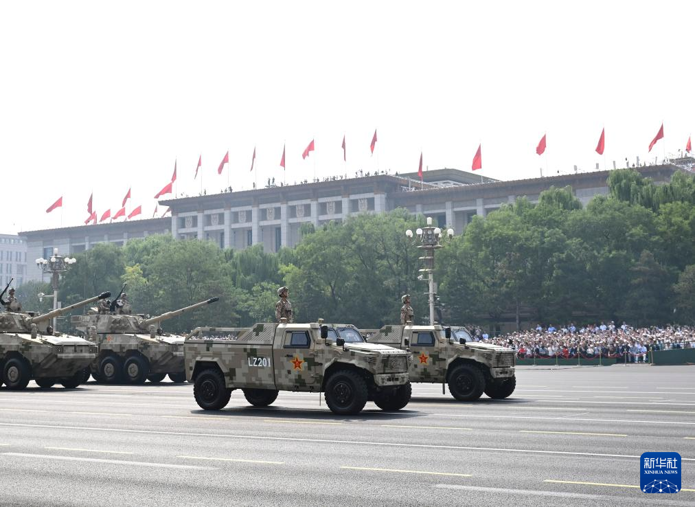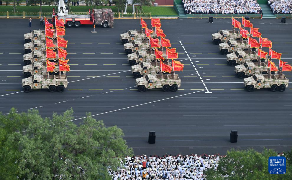 9月3日,紀念中國人民抗日戰(zhàn)爭暨世界反法西斯戰(zhàn)爭勝利80周年大會在北京隆重舉行。這是裝備方隊接受檢閱。