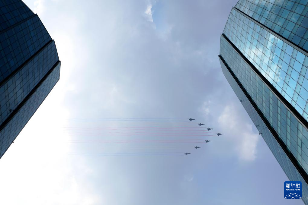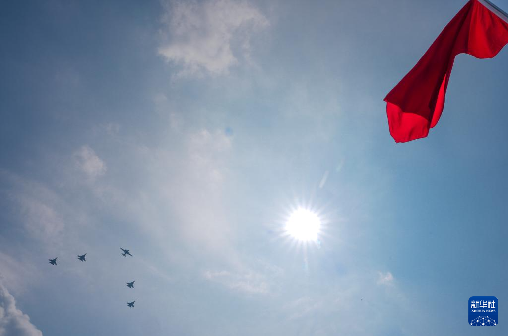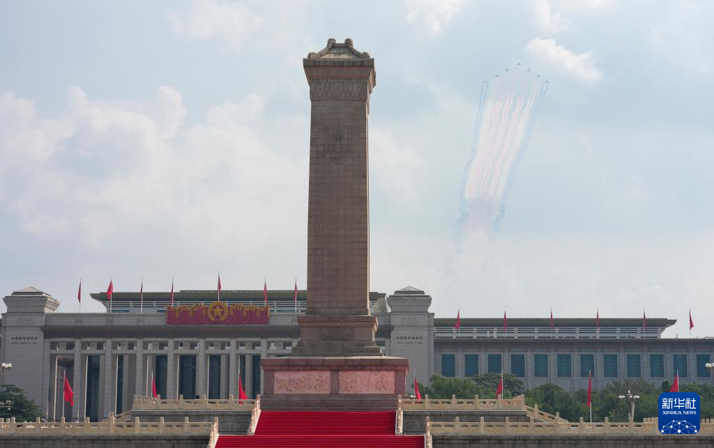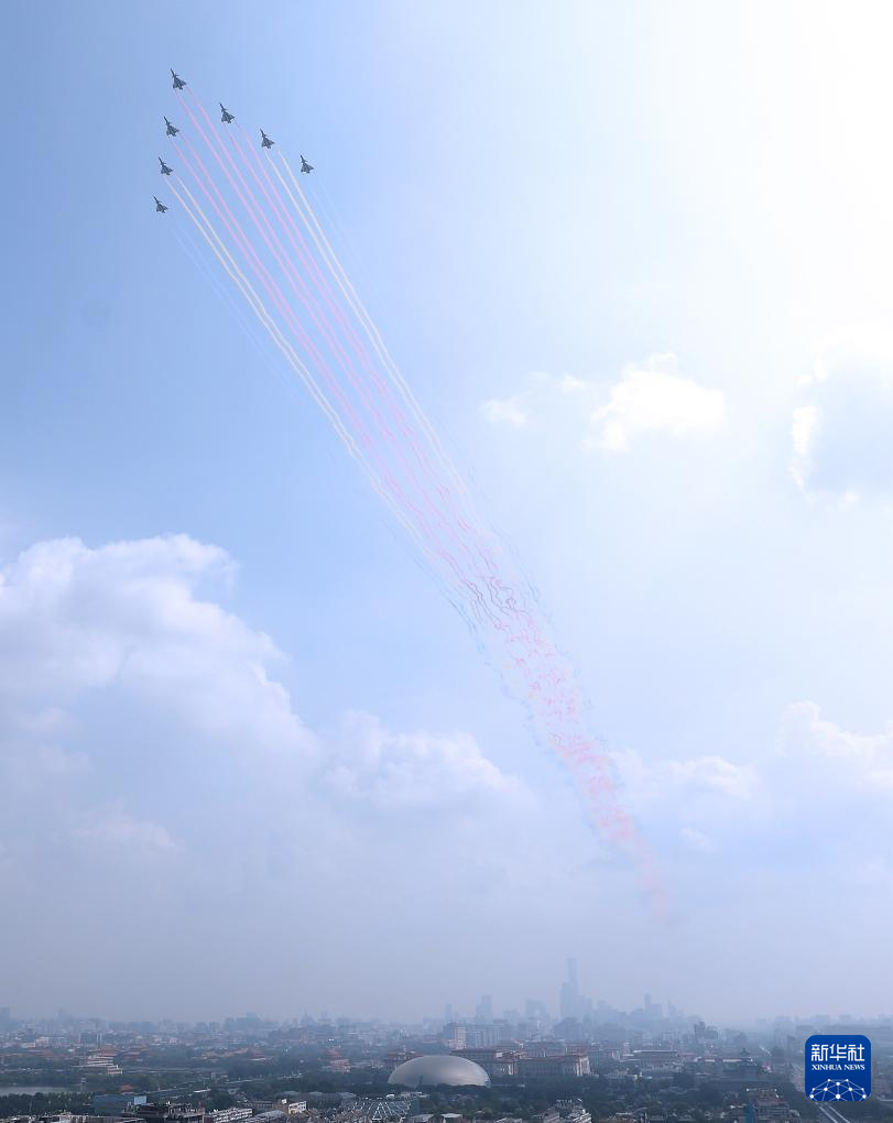 9月3日,紀念中國人民抗日戰(zhàn)爭暨世界反法西斯戰(zhàn)爭勝利80周年大會在北京隆重舉行。這是空中護旗梯隊飛過天安門廣場上空。