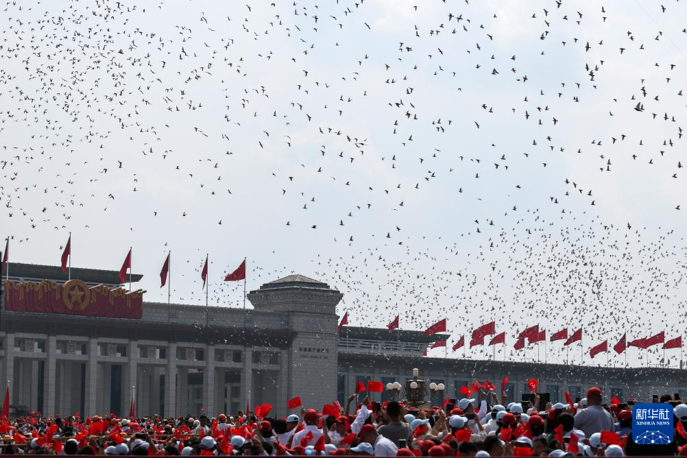 9月3日,紀念中國人民抗日戰(zhàn)爭暨世界反法西斯戰(zhàn)爭勝利80周年大會在北京隆重舉行。這是紀念大會現(xiàn)場放飛鴿子。