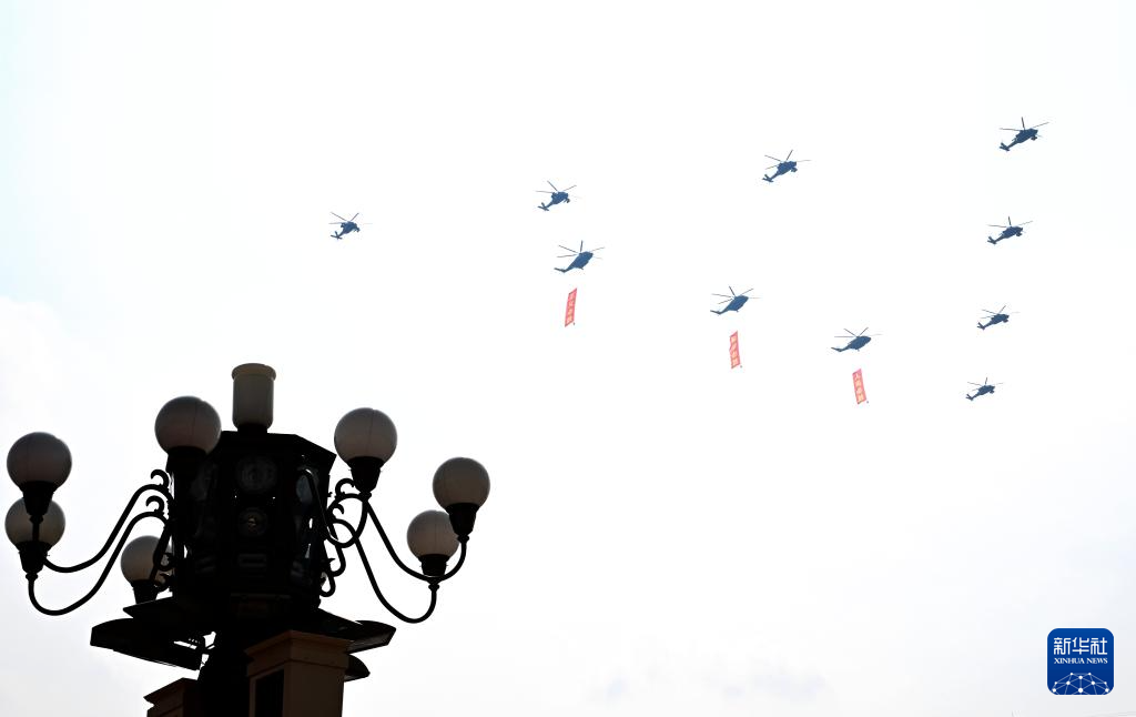 9月3日,紀念中國人民抗日戰(zhàn)爭暨世界反法西斯戰(zhàn)爭勝利80周年大會在北京隆重舉行。這是空中護旗梯隊通過天安門廣場。