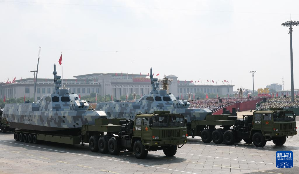 9月3日,紀念中國人民抗日戰(zhàn)爭暨世界反法西斯戰(zhàn)爭勝利80周年大會在北京隆重舉行。這是艦載防空武器方隊接受檢閱。