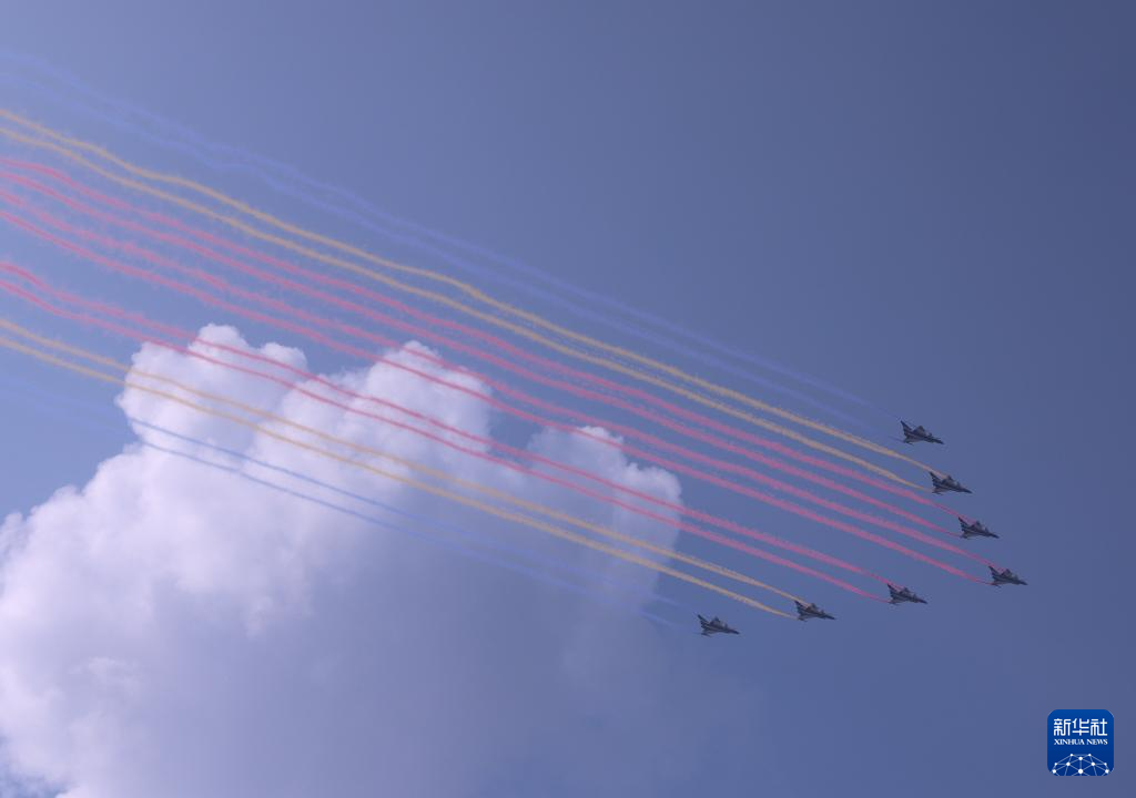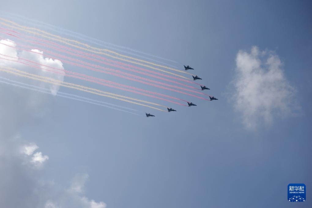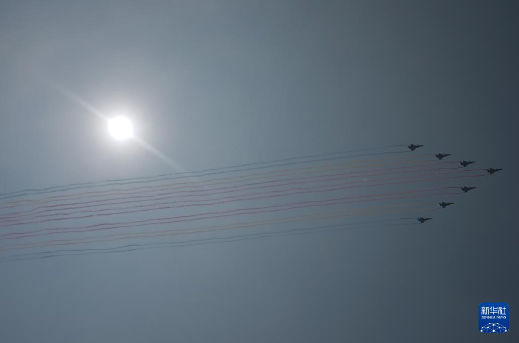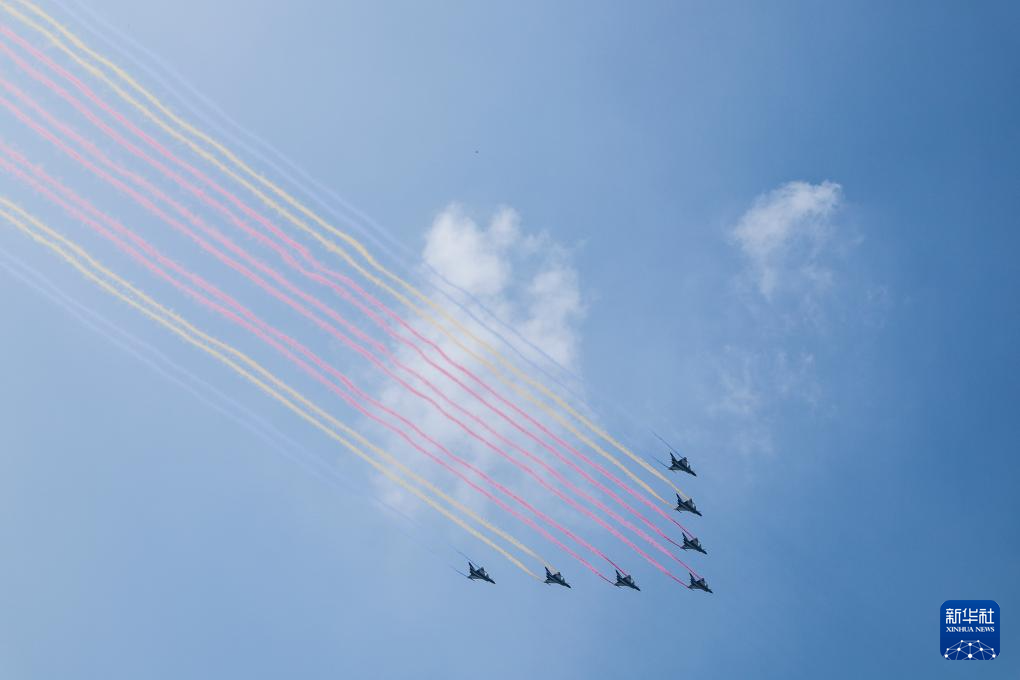 9月3日,紀(jì)念中國(guó)人民抗日戰(zhàn)爭(zhēng)暨世界反法西斯戰(zhàn)爭(zhēng)勝利80周年大會(huì)在北京隆重舉行。這是教練機(jī)梯隊(duì)飛過(guò)天安門(mén)廣場(chǎng)上空。