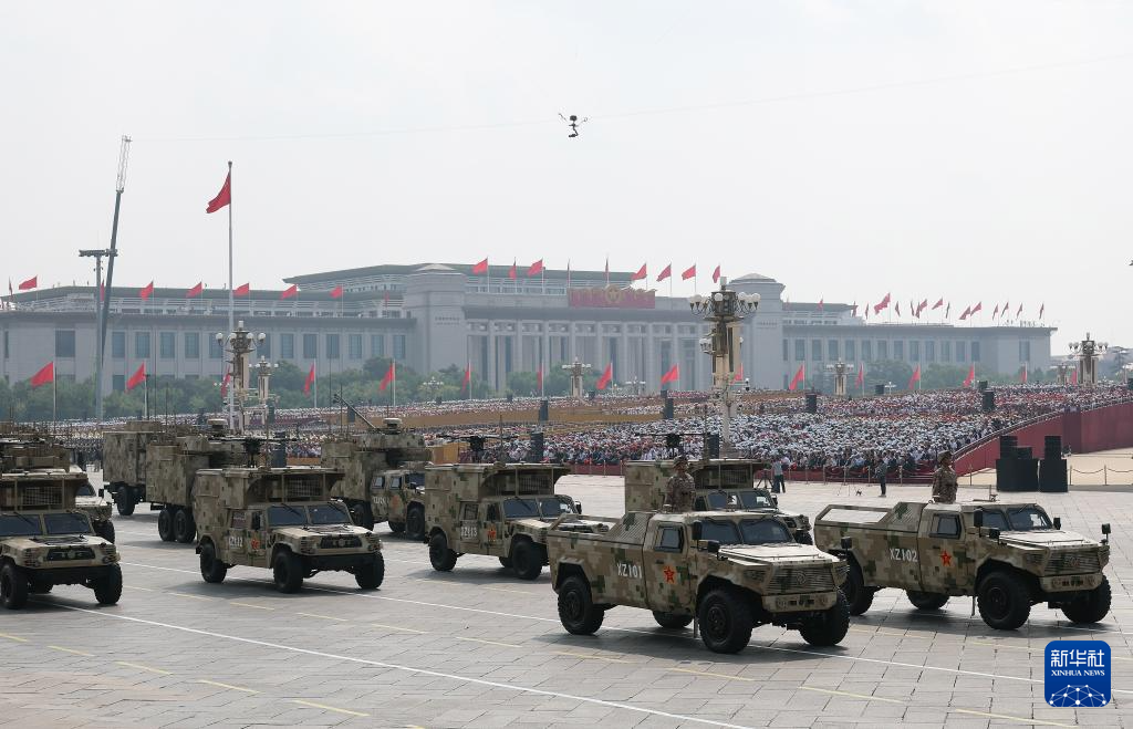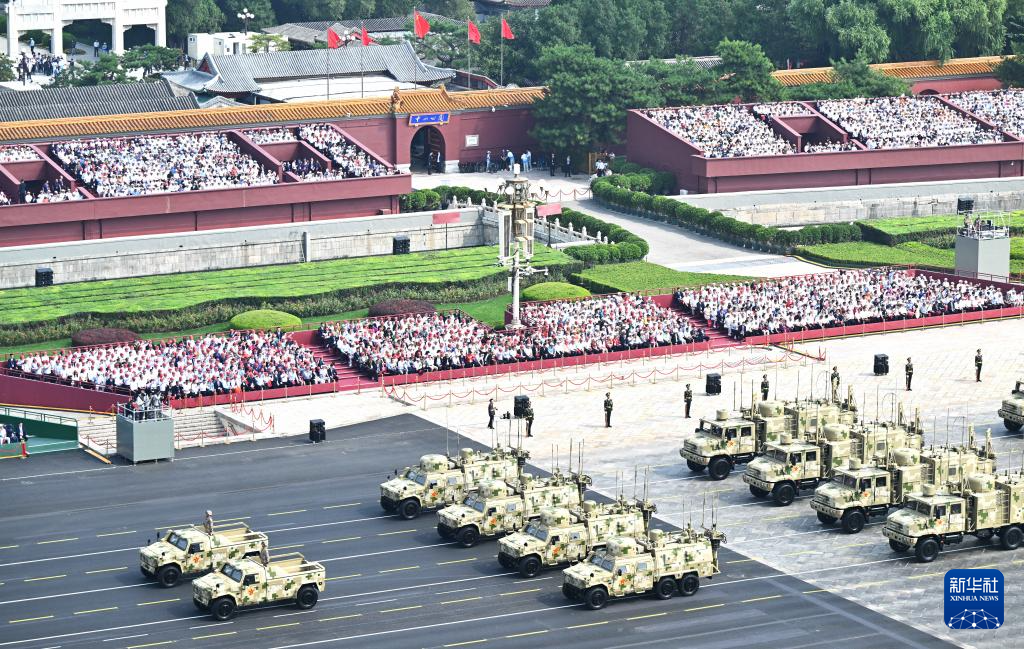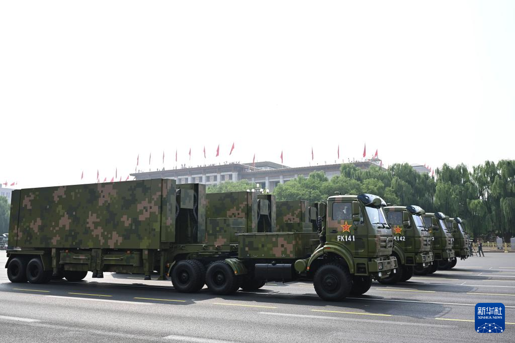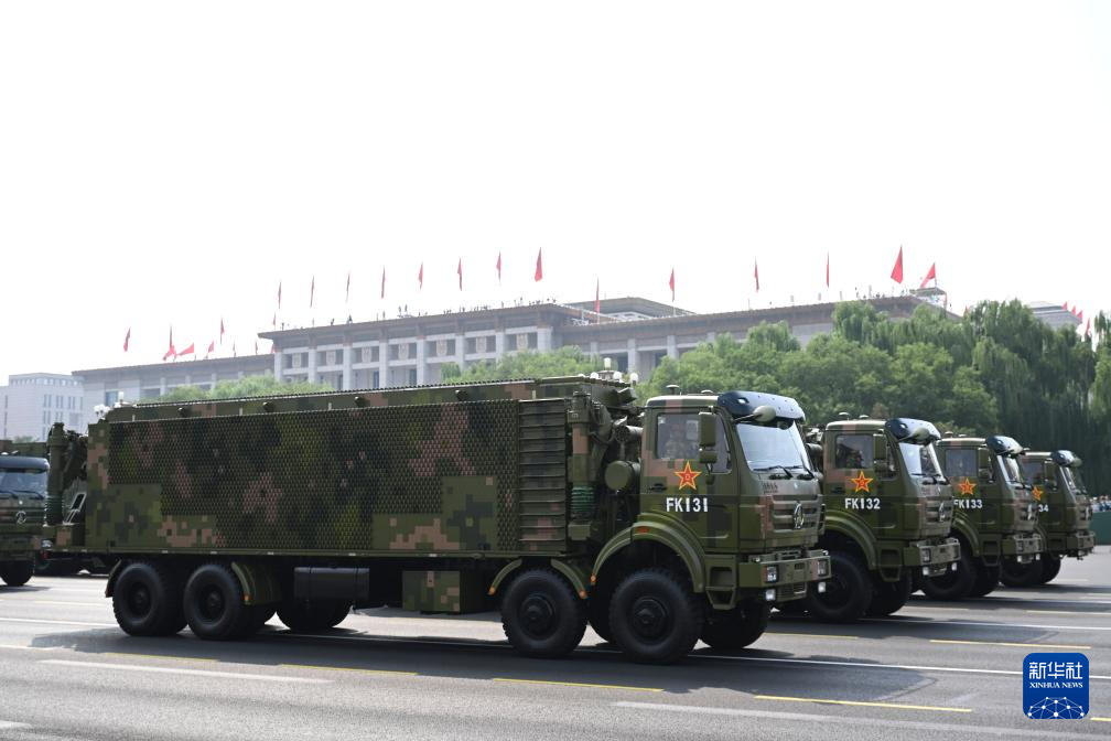 9月3日,紀(jì)念中國(guó)人民抗日戰(zhàn)爭(zhēng)暨世界反法西斯戰(zhàn)爭(zhēng)勝利80周年大會(huì)在北京隆重舉行。這是信息支援方隊(duì)通過(guò)天安門(mén)廣場(chǎng)。