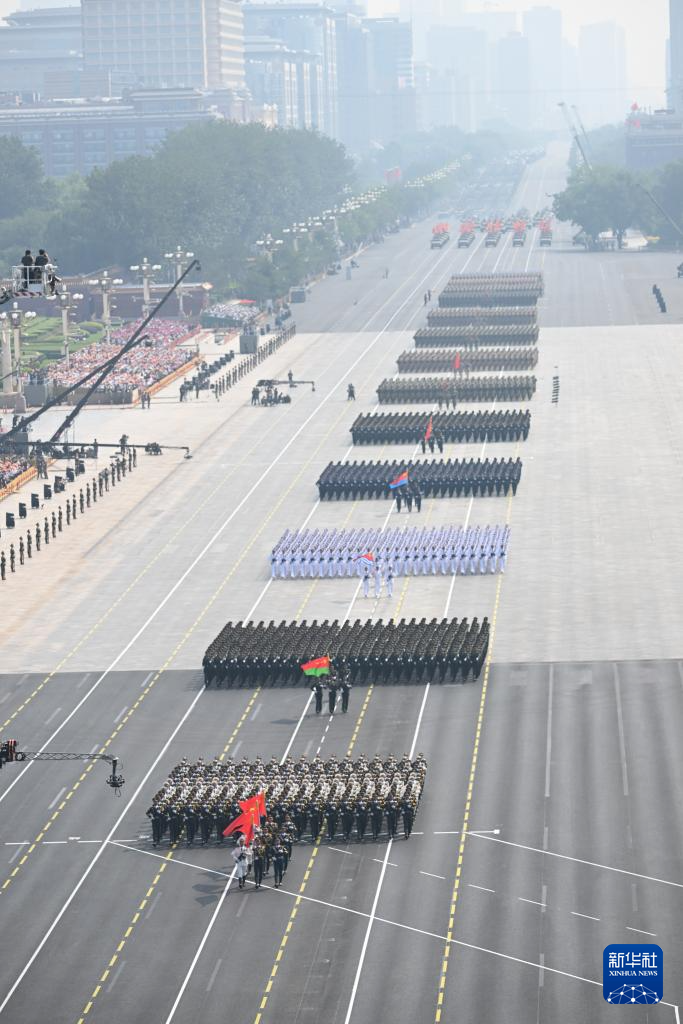 9月3日,紀(jì)念中國(guó)人民抗日戰(zhàn)爭(zhēng)暨世界反法西斯戰(zhàn)爭(zhēng)勝利80周年大會(huì)在北京隆重舉行。這是徒步方隊(duì)接受檢閱。