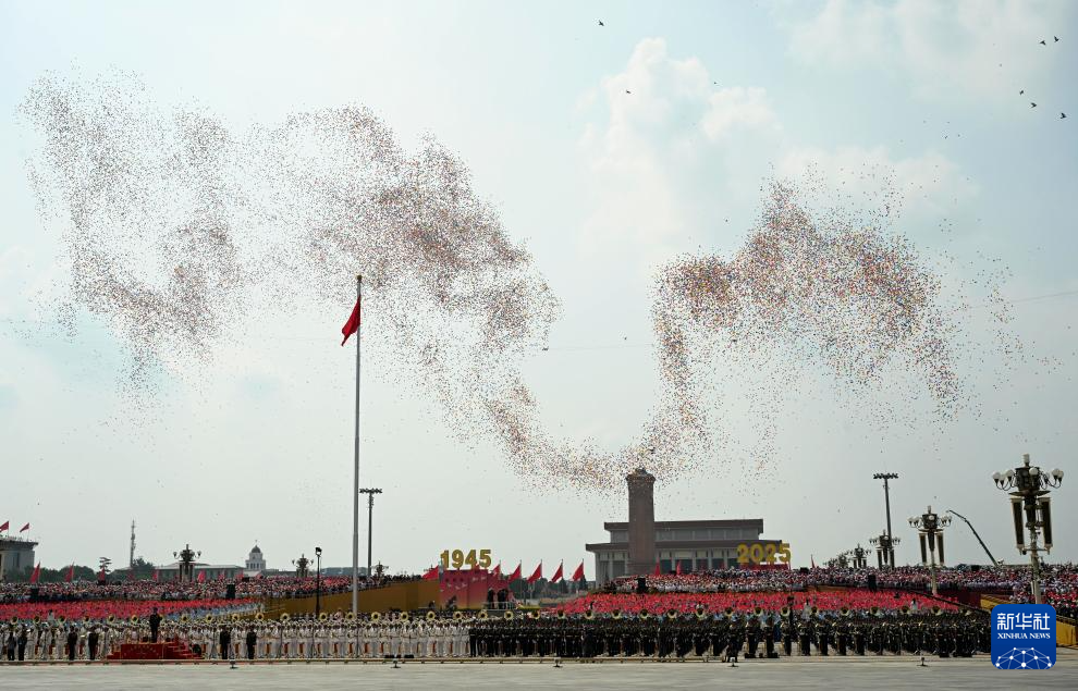 9月3日,紀(jì)念中國(guó)人民抗日戰(zhàn)爭(zhēng)暨世界反法西斯戰(zhàn)爭(zhēng)勝利80周年大會(huì)在北京隆重舉行。這是紀(jì)念大會(huì)現(xiàn)場(chǎng)放飛氣球。