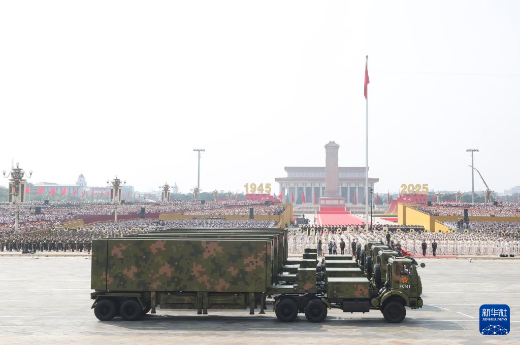 9月3日,紀(jì)念中國(guó)人民抗日戰(zhàn)爭(zhēng)暨世界反法西斯戰(zhàn)爭(zhēng)勝利80周年大會(huì)在北京隆重舉行。這是高超聲速導(dǎo)彈方隊(duì)接受檢閱。