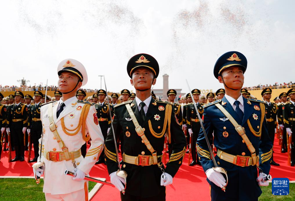 9月3日,紀(jì)念中國(guó)人民抗日戰(zhàn)爭(zhēng)暨世界反法西斯戰(zhàn)爭(zhēng)勝利80周年大會(huì)在北京隆重舉行。這是國(guó)旗護(hù)衛(wèi)隊(duì)在天安門(mén)廣場(chǎng)列隊(duì)。