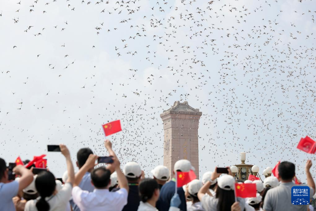 9月3日,紀(jì)念中國(guó)人民抗日戰(zhàn)爭(zhēng)暨世界反法西斯戰(zhàn)爭(zhēng)勝利80周年大會(huì)在北京隆重舉行。這是紀(jì)念大會(huì)現(xiàn)場(chǎng)放飛鴿子。