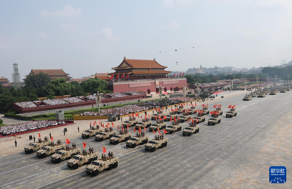 9月3日,紀(jì)念中國(guó)人民抗日戰(zhàn)爭(zhēng)暨世界反法西斯戰(zhàn)爭(zhēng)勝利80周年大會(huì)在北京隆重舉行。這是戰(zhàn)旗方隊(duì)和裝備方隊(duì)接受檢閱。