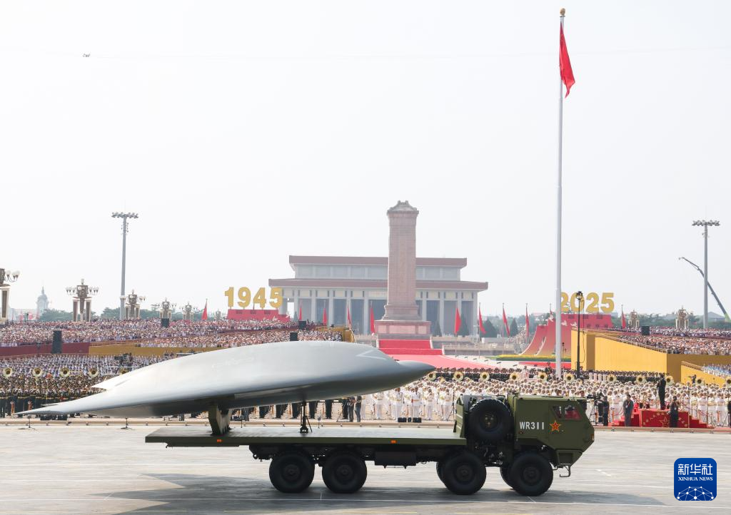 9月3日,紀(jì)念中國(guó)人民抗日戰(zhàn)爭(zhēng)暨世界反法西斯戰(zhàn)爭(zhēng)勝利80周年大會(huì)在北京隆重舉行。這是空中無人作戰(zhàn)方隊(duì)接受檢閱。