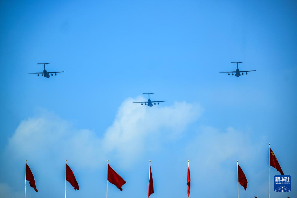 9月3日,紀(jì)念中國(guó)人民抗日戰(zhàn)爭(zhēng)暨世界反法西斯戰(zhàn)爭(zhēng)勝利80周年大會(huì)在北京隆重舉行。這是運(yùn)輸機(jī)梯隊(duì)接受檢閱。