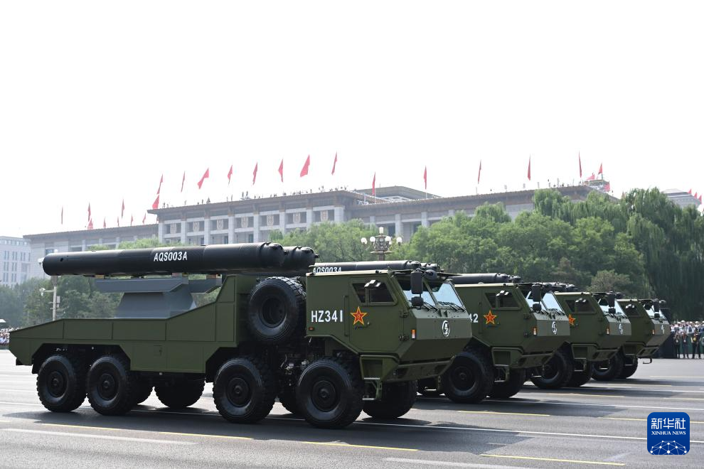 9月3日,紀(jì)念中國(guó)人民抗日戰(zhàn)爭(zhēng)暨世界反法西斯戰(zhàn)爭(zhēng)勝利80周年大會(huì)在北京隆重舉行。這是水下兵器方隊(duì)接受檢閱。