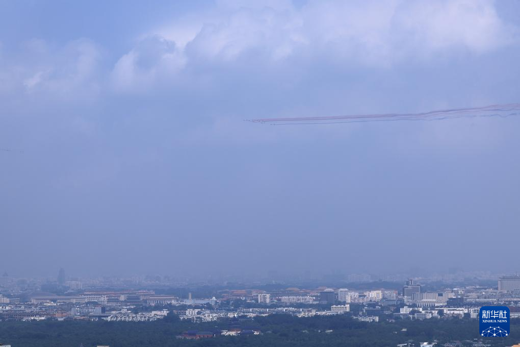 9月3日,紀(jì)念中國(guó)人民抗日戰(zhàn)爭(zhēng)暨世界反法西斯戰(zhàn)爭(zhēng)勝利80周年大會(huì)在北京隆重舉行。這是教練機(jī)梯隊(duì)飛過天安門廣場(chǎng)上空。